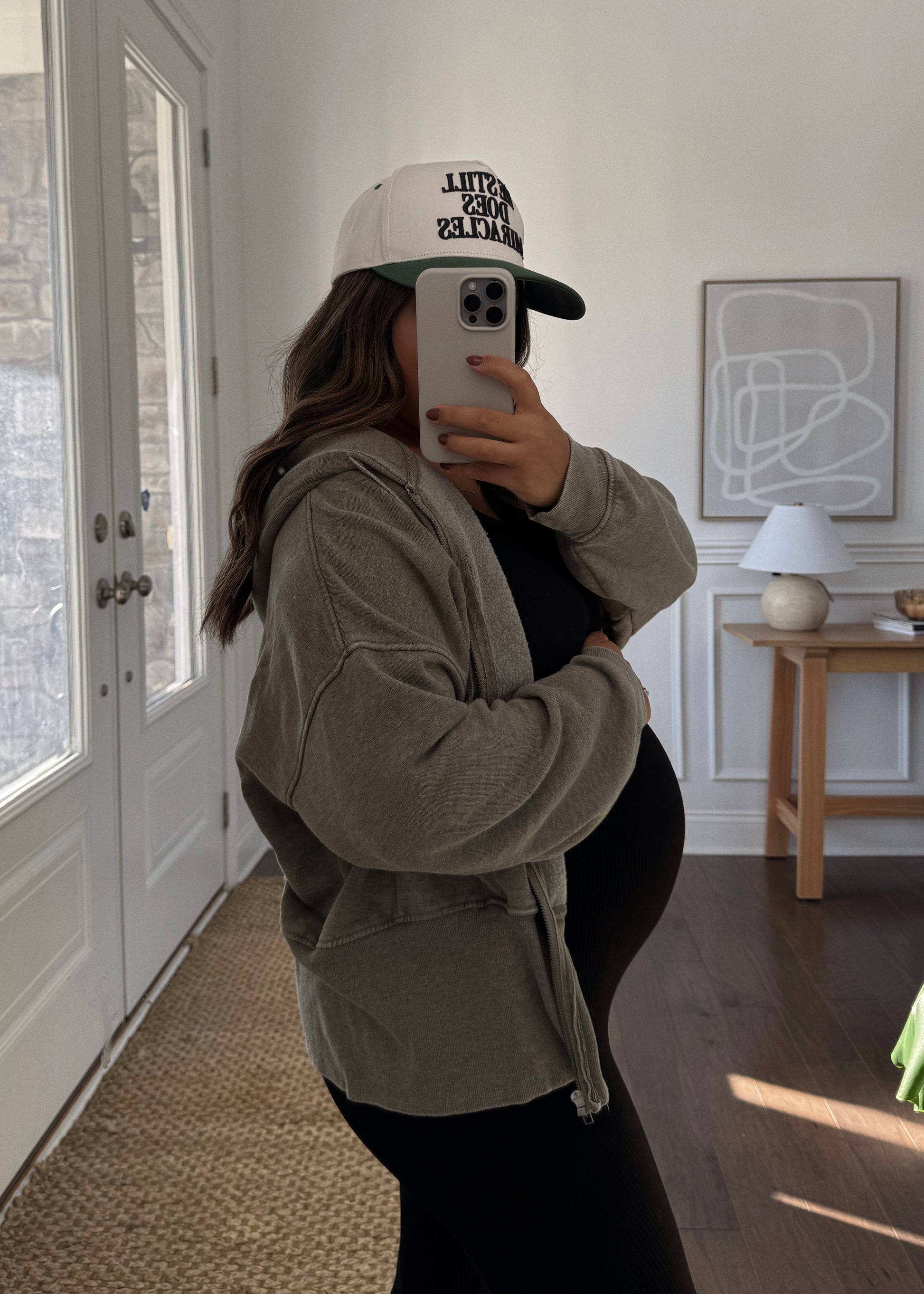 Model Details: The model currently weighs 170 pounds, is 28 weeks pregnant, stands 5'4", and her true size is a medium.